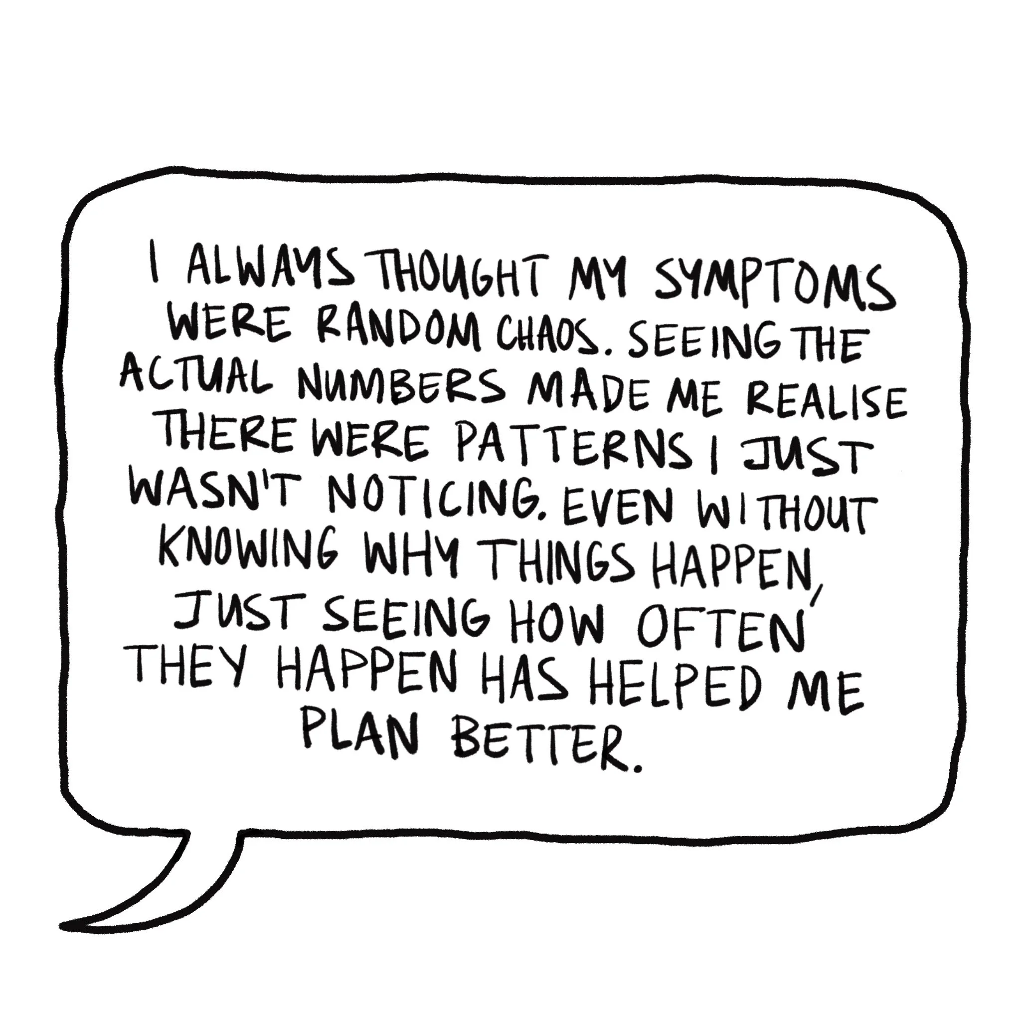 Previously, Emma had no clear picture of her symptom patterns. She knew she had "bad days" and "good days" but couldn't quantify or predict them.