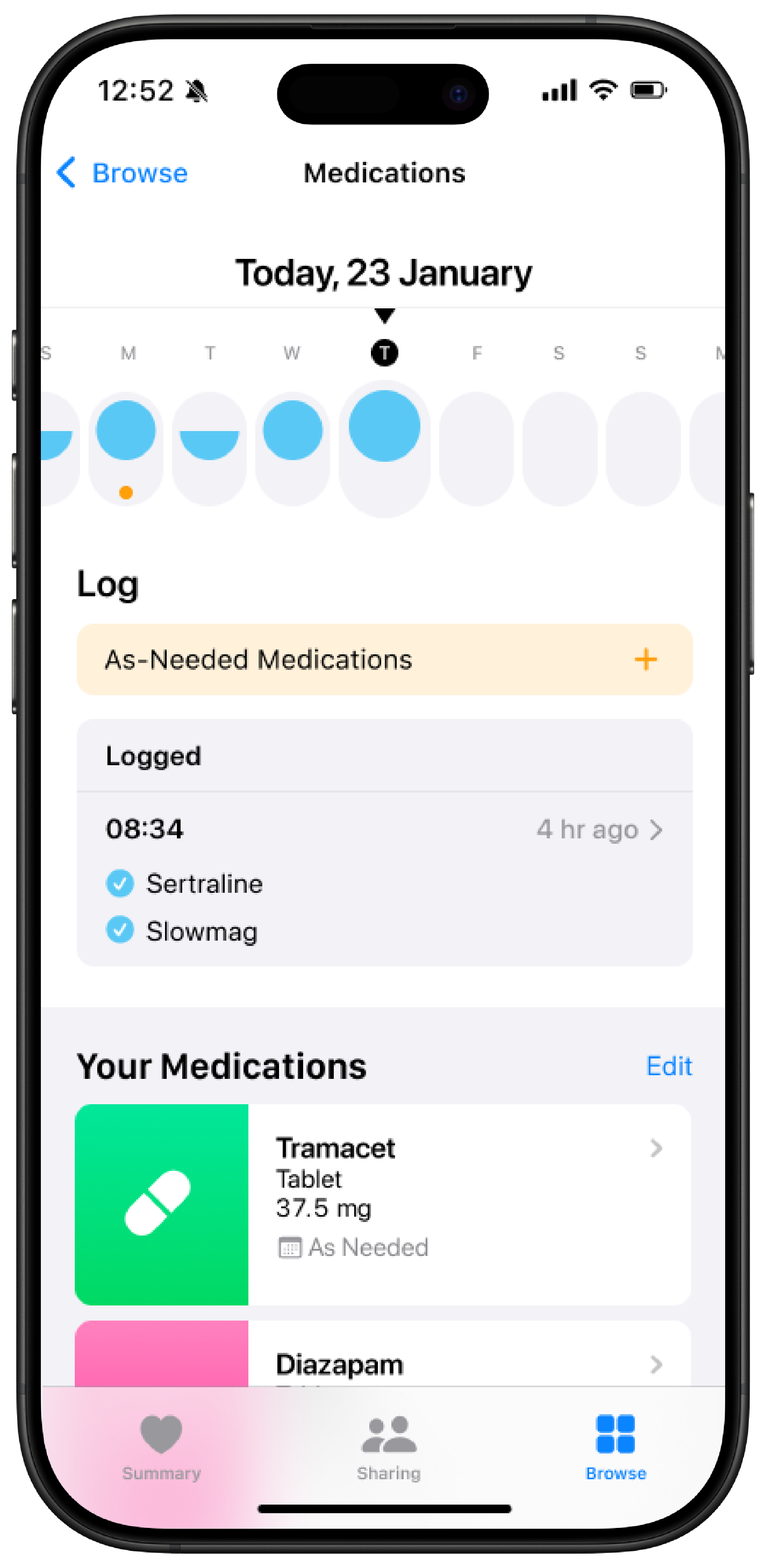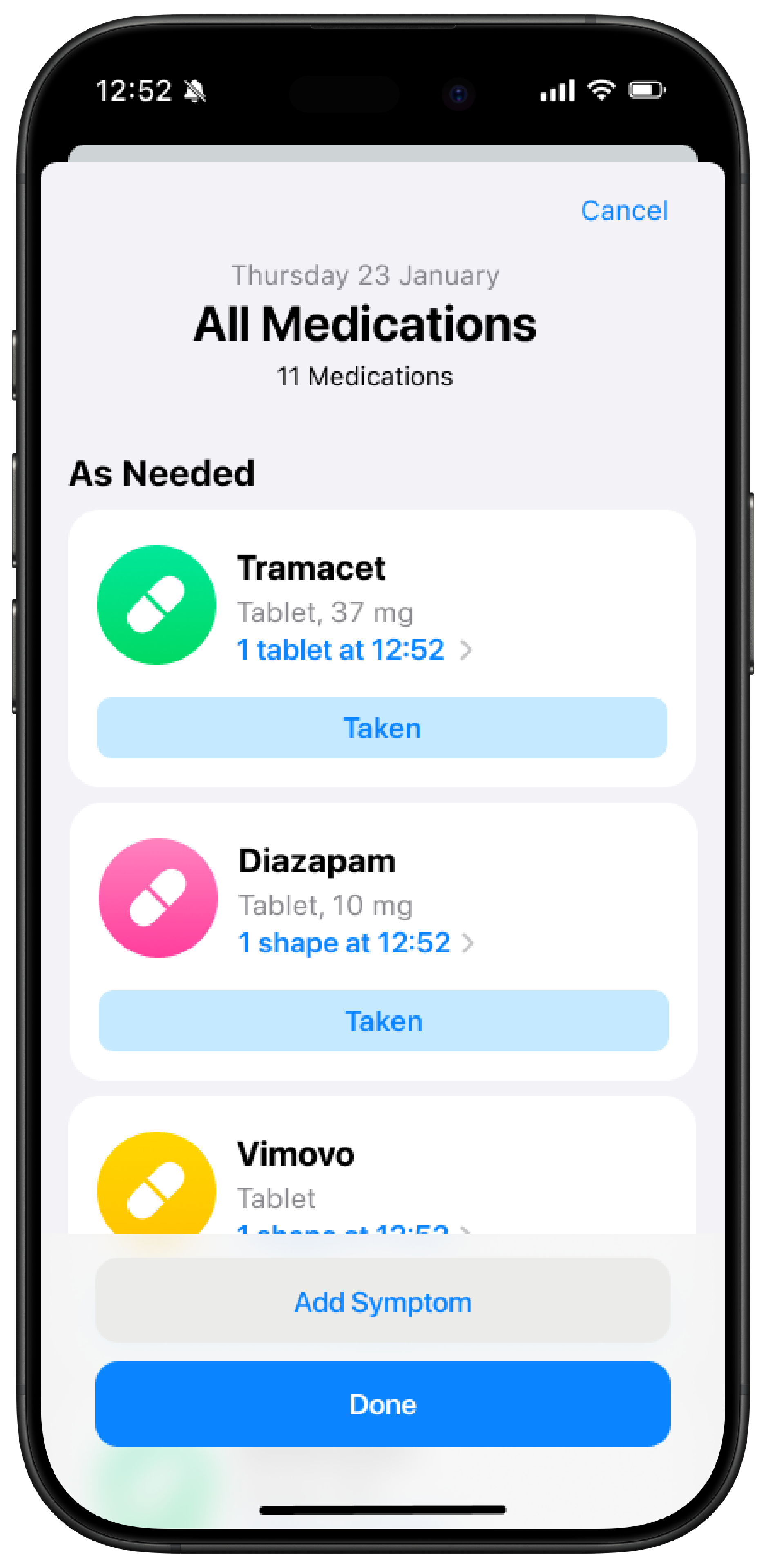 Ability to add ‘as-needed’ medication transforms a reminder into an adherence tool.